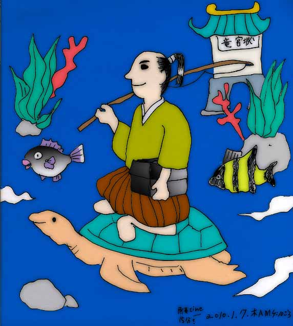 2010-01-06 の日記の内容に投稿した浦島太郎の線画にAdobe Photoshop6.0で色塗りしたものです。これを、色塗りしたのは、厳密に言えば、2010年1月8日(金)0:08~0:35ですが0時を少々過ぎただけなので、2010年1月7日(木)の記事とします。※この記事の更新も当然、実際には0時過ぎなので2010年1月8日(金)1時過ぎにしています。適当な線画でも色をフォトショップのバケツ機能で流すと前回と違ってずいぶん見られるようになりました。所要時間:27分-色塗り所要時間:15分-前回の線画所要時間:42分-総計