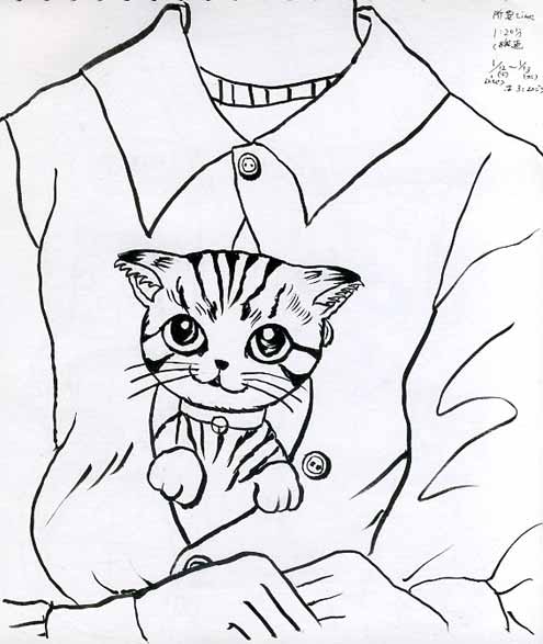 子猫や子犬をプレゼントされるのが小さい頃の憧れでした。それをイラストに・・・。子猫は、動物愛護センターの子猫を参考に・・・。線画は筆ペン、色塗りはCGで、Adobe Photoshop6.0です。背景は、フォト蔵から頂きました。所要時間:総計53分(線画:30分 色塗り23分)