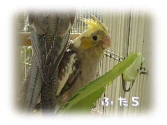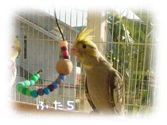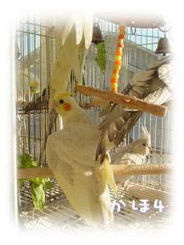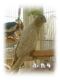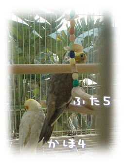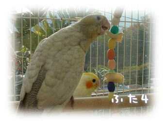 そそくさと上の止まり木にとまる ふた4ちゃん (´-`*)