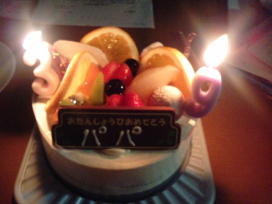 昨日は旦那の誕生日39歳です・・・ろうそく大3本と小9本は多すぎるので3と9の数字のろうそくを買いました誕生日プレゼントは・・・ふふふ・・・・明日の日記で