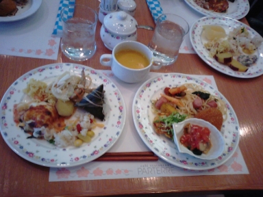今日はバドミントンの仲良し4人組でランチ忘年会をしました場所はパレスホテル大宮ランチバイキングをやってるお店があるのでそこに行きましたちゃんとしたホテルのバイキングは初めてだったけどすごくおいしかったいろんな種類を少しずつ食べられるのっていいねデザートの種類は少なかったけど最後のコーヒーまで堪能しましたお店の雰囲気も落ち着いていてよかったな大人向けのメニューだったから家族ではいかないかなうちの子たちはデザートさえ充実してればいいしランチは1時間くらいで終わってそのあとうちに移動してお茶してました朝から掃除大変だった~いきなり昨日、明日のランチの後家に遊びに行くね~って・・・あせった~でもたまに人が来ると家がきれいになっていいねうちってこんなに広かったっけ~って感じいつもこれだけ物が出てなければいいのに・・・あ~年末の大掃除しなきゃ