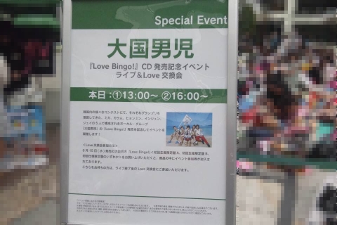 今日は渋谷で大国男児のイベントなんだけど平日の14時抽選って無理でしょしかもCD買った人は抽選出来て当たったらライブ観覧できるってなにそれ?ファンはみんなもうCD予約して買っちゃってるしさらに買えってことでしょ?わざわざ渋谷まで行って抽選外れたら交通費+CD代かかっただけで帰ってくるの?実際何枚も買う人いるみたいだしどうせなら抽選っていわないでCD買った人はライブ見れますっていうんならまだ話はわかるけどそれだと一人一枚しかCD買わないからでしょ?抽選で当たるまで買わせるパターン?大国男児のファンは若い子が多いけどみんなお小遣いやバイト代大変だねうちの次女も最初イベント発表されたとき行きたいっていったけど・・・無理土曜日のリリースイベントで川崎まで行くんだから我慢してくれ今CDって売れないみたいだから売るほうも必死なんだろうけどそんなに同じCD何枚もいらないからあ~ほんとオリコンの順位って・・・ って愚痴ったけどこれは大国男児への不満じゃなくて企画や売り方に対しての不満・・・ 大国男児は応援してるし普通のイベントは行くからね~