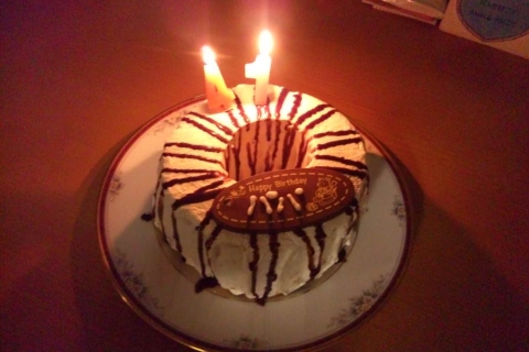 今日は旦那の誕生日今年はバナナシフォンケーキをつくりましたなかなかよくできたよ本当は昨日作ったんだけど大きな穴が2つもできちゃって失敗今日の朝もう一回作りなおしました本当は切ってから生クリームとチョコレートをかけるとおいしいんだけど誕生日なのでデコレーションしましたでも子どもは生クリームが足りないと・・・切ってからたっぷりかけたほうがおいしいよね今回はじめてバナナシフォンをつくったけどやっぱりちょっと甘いかないつもはココアシフォンだからほろ苦くてあまり甘くないんだそっちのほうがよかったかなたまには違うの作ってみたかったの・・・