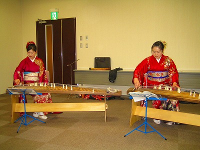 今日からブログを始めることにしました。箏を弾いている「紫水会(しすいかい)」と申します。ココで言う箏とは楽器の「琴」のことです。(シャレじゃありませんよ!)このブログでは、日頃の私たちの活動のようすを綴っていきます。「箏って難しそう・・・」「やっぱり着物でやるの?」「わたしでも、できるかなぁ?」とか、素朴な疑問も解決していきたいと思っておりますので、よろしくお願いします。今日は、お花の教室の新年会で演奏してきました演奏したのは、1 さらし風手事(宮城道雄作曲)2 箏合奏のための舞踊組曲(平井康三郎作曲)3 光の龍(お花の流派の歌。自分たちでアレンジ)の3曲でした。振袖で弾きました。ふぅ~疲れた