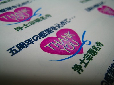 いよいよ明日は、5回目の観月会です。一つの節目ということで、ささやかではありますが、お土産を用意させていただきました。どんなモノかは来てからのお楽しみですが、ちょっとだけ一部をお見せします。このシールを貼って、明日お配りします。限定100個の早い者勝ちですのでお早めに!!それでは、明日お待ちしています。