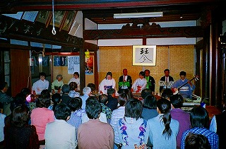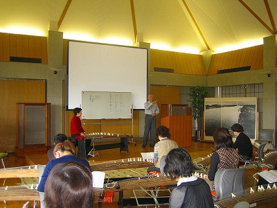 遅くなりましたが、宮田耕八朗先生の講習会のようすです。沢井箏曲院の山本芳子先生とのデモンストレーション。宮田先生の楽譜を最初に見たとき「何なんだこの指づかい!?」と思ったのですが、宮田先生から実際にお話を聞いて、「なるほどと」思いました。また、楽器のことを知っているようで知らないことも指摘され、とても勉強になりました。宮田先生、ありがとうございました。打ち上げの写真です。