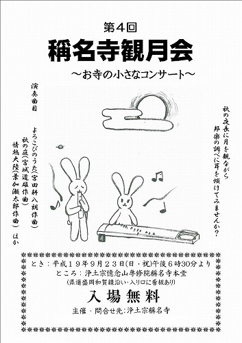 今度の観月会のポスターができました。いよいよ近づいてきたって感じです。お近くの方、ぜひぜひいらしてくださいね。