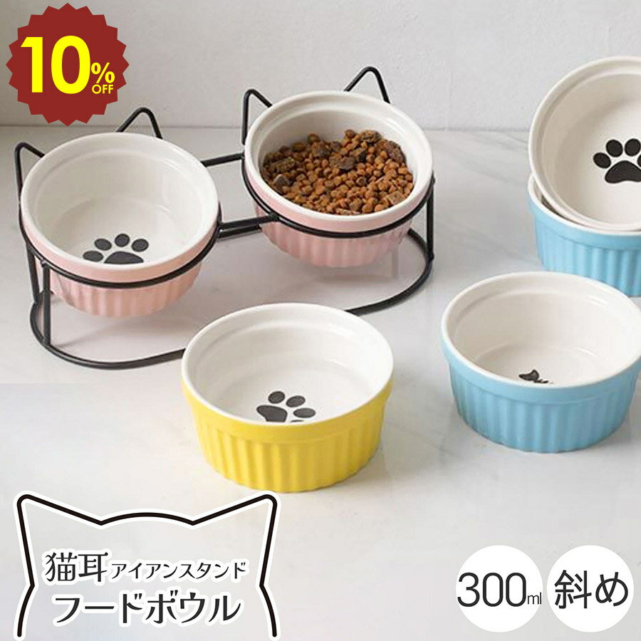 猫耳 アイアン スタンド 付き フードボウル 猫 犬 斜め猫耳アイアンスタンドフードボウル フードボウル アイアン スタンド付き 猫 犬 子犬 子猫 斜め 傾斜 高さ スタンド おしゃれ かわいい 陶器 高さがある 脚 ペット お皿 台 食べやすい 水 高め ご飯 猫耳タイプ プレゼント 送料無料