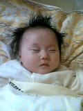 今日もあっついですね~!さて、うちのちびちゃん ここではちびちゃんと呼んでますが もう3ヶ月もたって大きくなってきたのでそろそろ呼び名をかえようかと思いますちびちゃんの一番の特徴といったら個性的で魅力的な髪の毛だと思いますそっから連想していろいろ考えてみました!!・ボンバーヘッド・ベジーター(ドラゴンボール)・サイヤ人(ドラゴンボール)・女平八(プレステゲーム 鉄拳)・キューピーう~む 画像ものっけてみよっと!うはw平八そっくりだよ!!こりゃ 呼び名は女平八で決定だなと思ったところだめ!だめ!だめよ!だめよ!!と私の母性が叫びます むぅ やめるか・・・・んじゃ~ かわいいのから選ぶとキューピーしかないなぁw髪の毛の生え方もそっくりだし!よしキューピーをちょっと変えてきゅぴちゃんにしようん!そうしよっと!今日からきゅぴちゃんになりました!どうか宜しくお願いしまーす我が家のきゅぴちゃん 普段は髪の毛がはっきり写ってるのは載せないんだけど。。。今日は特別に!ドラゴンボールAF