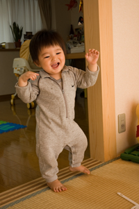 あんよが楽しくなってきましたニコニコしながら歩きますなんだか踊っているみたい10歩以上あんよができるようになりました。涼しくなってきたしこれからはお外で歩く練習しようね1