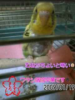 土曜日トリたちの診察で、無事に!ぴーちゃんの卒業が決まりました胸をつつかないようにしなければ、元気いっぱいになったので、通院終了ーっ\(^o^)/予想に反して、チョンマゲは心臓が大きくなるのを防ぐために定期的に点検ですしかし…ぴーちゃんはホントに強いざんす…胸の羽はないけど、ワタシに発情するわ、ご飯を取り替えるたびに噛みつくわ~ま、元気がなによりっ