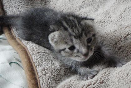 ぱこ(仮名)を見つけた経緯を記録しておこうと思い書きました。 ぱこを見つけた時、生きてるようには見えませんでした。 ダンボールを見つけたのは同居人「なぁあそこのダンボールってネコもらってくださいって感じだよね?」「そうそう絵に描いたようなダンボールに捨て猫っていないっしょ」でもやっぱり気になるので、近づいてみた。「のぞくのやめへん?もしネコおったらどうするん?」同居人、腰がひけてます。 後で聞いたら腐乱死体が入ってたら気絶するかもと((((;゚Д゚))))ガクガクブルブルだったらしい。朝から雨が降ったり止んだりで、ダンボールもボロボロになりかけていて結構前から置いてあるように見えたので最悪の状況を想像してしまったらしい。 そぉ~っとフタを上げて中を見た。太めのかりんとうみたいな物体発見!「ね、ねこがおった!」 思わずフタをしめてしまった。敷いてあったタオルもしっとり濡れているみたいだったし、なによりピクとも動かない・・・ 「やっぱ死んでるんかな?どうする?」 「このままってわけにもいかんでしょ」もう一度フタをあけて、そっと触ってみた。「う、動いた~生きてるよ。生きてる!」 幸い、行きつけの動物病院が近かったので、時間外だけどなんとか診てもらおうと連れて行きました。知らず知らずのうちに早足から小走りに。2時~5時は手術などで一般診察はしていないのですが、すぐに保温室(酸素補給器付き)に入れてミルクも飲ませてくださいました。病院の先生&アシスタントのお姉さん、本当にありがとうございます(o*。_。)oペコッ そんなこんなで今、ぱこは生き延びる可能性にチャレンジ中です。 design by *Sweet snow*