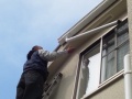 先日の強風で二階部分の雨どいが壊れてしまいました。接続部分が外れて180度回転しちゃっています~。風が吹く度にくるくるくる…。まわるまわる~。我が家と同じように雨どいが壊れたお家がたくさんらしく、今日やっと修理の業者の方が来てくれました。