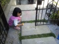 静かだと思ったら…玄関先でお絵かきしてました。…お願いだから…壁には書かないでね。