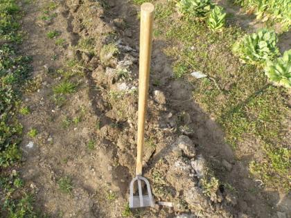 良い天気が続いて、畑仕事を開始しました。トラクターで耕すと、越冬したイチゴやヤーコン、赤タマネギの苗が全部ダメになってしまうので、今年は自力で土を耕すことにしました。普通の鍬(くわ)では、歯がたたないくらい堅い土になっているのでこのような鋤(すき)を購入してきました。土を軟らかくする特製石灰をまいて耕してみました。去年植えた白菜からは薹(とう)が立っていて収穫して食べてみることにしました。これはチンゲサイの薹です。家に持ち帰り、夕食でお浸しにして食べましたが、とても柔らかくて甘みがあり、春の味を楽しみました。 ← ランキングクリックのご協力をお願いします。