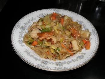 節約術として、安くてヘルシーに食べられる「モヤシ料理」を作っています。「もやしたっぷりのチャンポン風」の料理です(4人分)。具はあり合わせのものを一部使ったので、マニュアルとは違うものが入ってします。見た目はいまいちでしたが、味はグーでおいしかったですよ。下ごしらえした材料です。豚肉は塩、酒をふって片栗粉でもみ込んであります。また、ニンジンは去年植えた我が家の畑で収穫したものを使っています。昔ながらの独特のあの味のする有機栽培ニンジンです。フライパンにサラダ油を熱し、下ごしらえした材料を豚肉、野菜類、調味料などを入れて炒めました。スーパーでモヤシは40円前後で買えます。完成したところでも一食100円もかかっていないと思います。家計を節約したいと思っているあなたも、モヤシ料理を作ってみませんか。 <レシピ>もやし…1袋 豚肉…100g 塩、酒、片栗粉…少々絹さや…40g キャベツ(白菜)…2~3枚 ニンジン…1/2本チクワ…3本 サラダ油…小さじ1 コンソメスープ…大さじ1酒…大さじ1 塩、砂糖…各小さじ1 こしょう…少々片栗粉…大さじ1 水…大さじ2 ごま油…小さじ1参考資料: 「スゴイ もやしレシピ」(レタスクラブMOOK) ← 写真をクリツクしてご覧ください。 ← ランキングクリックのご協力をお願いします。