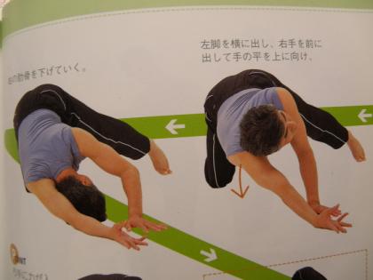 腰痛とともに悩まされるのが肩の痛みです。私に合った第一番目の自己整体はこれです。(方法)左足を横に出し、右手を前に出して手の平を上に向けます。右のろっ骨下げていく。そして、からだを左右に揺さぶり、徐々に左脚を前にもってくるとより効果がアップします。血流が良くなる風呂上がりが効果的ですが、痛みがあるときの「とんぷく薬」のようにして使うと、不思議と痛みが引いていくのが実感できるようです。 ← 写真をクリックしてご覧ください。 ← ランキングクリックのご協力をお願いします。