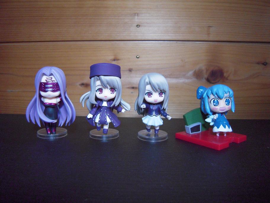 昨日から東京へ行ってました。特別目的があったわけではないですが、久しぶりに会う友人と飲んで騒いで、楽しかったです♪そのお土産にゲーセンで取ったFateのねんどろいどぷちをもらいました↓さっそくHOLLYHOCKさんから以前頂いたチルノと一緒に飾ることに!一気に机の上が華やぎました。イリヤかわいいよ、イリヤ。Fateの中ではかなりお気に入りキャラなのでうれしいです。しかし、このねんぷちってよくできてますね~。小さいのに服とかの細部まで再現されているし、表情もちゃんと描かれているし、大きさも値段も手ごろだし。やばい、ハマるかも・・・