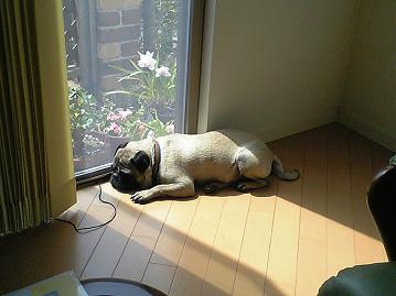今日は5月下旬並みの陽気だったといいます。暖かいワケですな。明日は平年並みに戻るらしいです。寒暖の差のジェットコースター調子狂わないといいですが。^^;それはともかく。 暖かな日差しの中でちびクンはぐっすり昼寝してました。 今日は犬仲間の集まりが盛況でした。ウチの知ってる犬さん達が一堂に集まったようなカンジです。いつも朝に会うコロちゃん♂暖かいので今まで服を着てたミルキー姫が今日は一糸まとわぬ姿で登場。にしても春真っ盛りになってしまったせいでしょうか一匹の♀をみんなで追っかけまわしてました。もういい加減いいトシなゆりか女史にみんな集ってました。もっとも,ちびクンは去勢してるので関係ないようでしたが…。先に登場したコロちゃんもゆりか女史をしつこく追い回していたのですがこれにキレてしまったゆりか女史コロちゃんに逆襲を開始です。なんとコロちゃんの上にのしかかってしまいました。ウチのちびクンもかつてはのしかかられた経験があります。結構気が強いゆりか女史。最近は関節を痛めておとなしくしてたのですが今日は暖かいので調子もよさそう飼い主さんがそう仰ってました。そんなところは人間と同じなのですね。『人間と同じ』それならちびクンが人間でσ(-_-)達夫婦の本当の息子なら。なんてしみじみ思っちゃいました。そんなこと絶対にあり得ないのにね。でも君はσ(-_-)達の息子だよ。ちびクン.....。