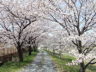 上流、下流側に数キロは続く並木。