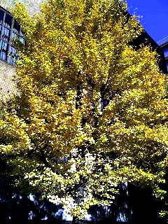 交差点の際で、午後の明るい日差しを受けて黄金色に輝いて見える。