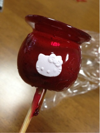 いとこのとこのお祭りを観に行ったときに買ってもらったもの近所のおっちゃんに買ってもらいましたなんとこの林檎飴!!キティーちゃんがあるんですよ珍しいですよね滅多に食べないんですが、貰ったので美味しく頂きました小さいので食べやすかったです一緒にベビーカステラも貰いましたこっちのお祭りの方が楽しめました