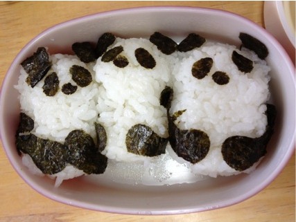 パンダが好きな友達がいて、その友達のお弁当!!ご飯がパンダです♪こういうのやってくれるお母様羨ましいですわ><かわいいので写真を撮らさしていただきました♪