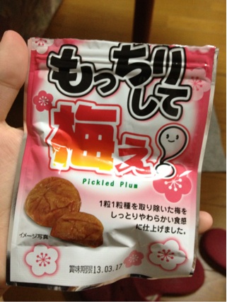梅のお菓子が昔から大好きそして最近食べてなかったな、と思って買ってみたほしうめ!最初は甘いんだけど途中から酸っぱくなって美味しい味ですね♪ちょっとだけじゃ足りなくなってまた欲しくなりましたが・・・金欠なので我慢です><