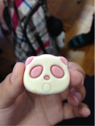 またまたパンダ!これはパンダ好きな友達が誕生日プレゼントにもらったお菓子をもらったものです♪美味しかったですよ!!ただねー、4つしかなかったうちの1つをもらったからちょっと悪かったな、って思うんだけど、まあもらったものは有り難く頂きたかったしね・・・。ごちそう様でした!