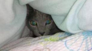 いつも私と一緒に起きていたのですが 最近は、毛布の中に入り、二度寝です。 夜は、毛布の上で寝てるのですが、 雨戸開けるので眩しいのでしょうか~~ この後、寝てしまいました・・・。