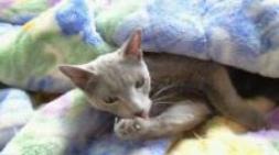 いい天気なので、こたつ布団をかたづけようとベランダに干したら・・・ どこからとなくやって来て、中に入ってくつろぎ始めたので 写真を撮ろうとめくったら、嫌な顔をされました。 ゴメン、雛! トッポは、通り抜けただけでした。