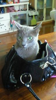 娘のカバンに入れられて・・・ 最初は喜んでいたような~ 2度目は、お気に召さないのか・・・ 難しい顔の雛です。 何か、考えることでもあるんですかね~