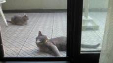 今日は特に暑いです。南国育ちでも大変です。 九州では、梅雨明けしたそうですが、関西もそろそろですかね~? 昨日は、庭木の剪定と、薬を散布しました。 以前から、桜の木が伸びているのが気になっていましたので やっと実行することが出来ました(庭仕事は全て私の仕事です)。 脚立と高枝切りばさみを使ってやります。 高枝切りばさみは便利ですが、少し枝が太くなると切れないのが欠点です。 上の方になると、下から見たとき葉で見えにくいのも大変で、つい、 切り残しが出来てしまいます。 今の高さが、脚立にのって出来る精一杯の作業になります。 時々、切ってしまいたいときがありますが、来年の春を思うと なかなか出来ませんね。 10年ほど前に買ったときは、1980円の細い細い苗木だったのに・・・。 また、キョウチクトウも思わず切っていまいました。 花の蕾があったのですが・・・、つい、 来年はこそは、早めに刈り込んでたくさんの花を付けたいと思います。 ・・・・・、でも、毎年思ってるのですが・・・・。 只今、部屋の温度33、1度なり!! 暑いです~。自分だけだと、もったいなくてクーラーもつけられません。 扇風機で我慢しながら、冷たい水を飲んでます。 で、猫さん達はどうしてるかと言えば トッポも暑いみたいで、あちらこちらと移動してました。 雛の様子を見に行ったら・・・ 暑くないのか、押入の中で寝ていました。 (押入は、襖じゃなくてカーテンがしてあります。) 押入って暑くないのでしょうか~??? 窓が開いているので、多少は風があるかもしれませんが・・・?? これから、本格的な夏が来ると思うと、ゾ~ッとしますね。 猫さんも、みんなも夏バテしないように気をつけなくては・・・。