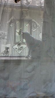 娘の部屋の窓辺で 風でカーテンがゆれて・・・ 雛のシルエットが、なんだかよくて・・・ 心地よい風が気持ち良さそうでした。