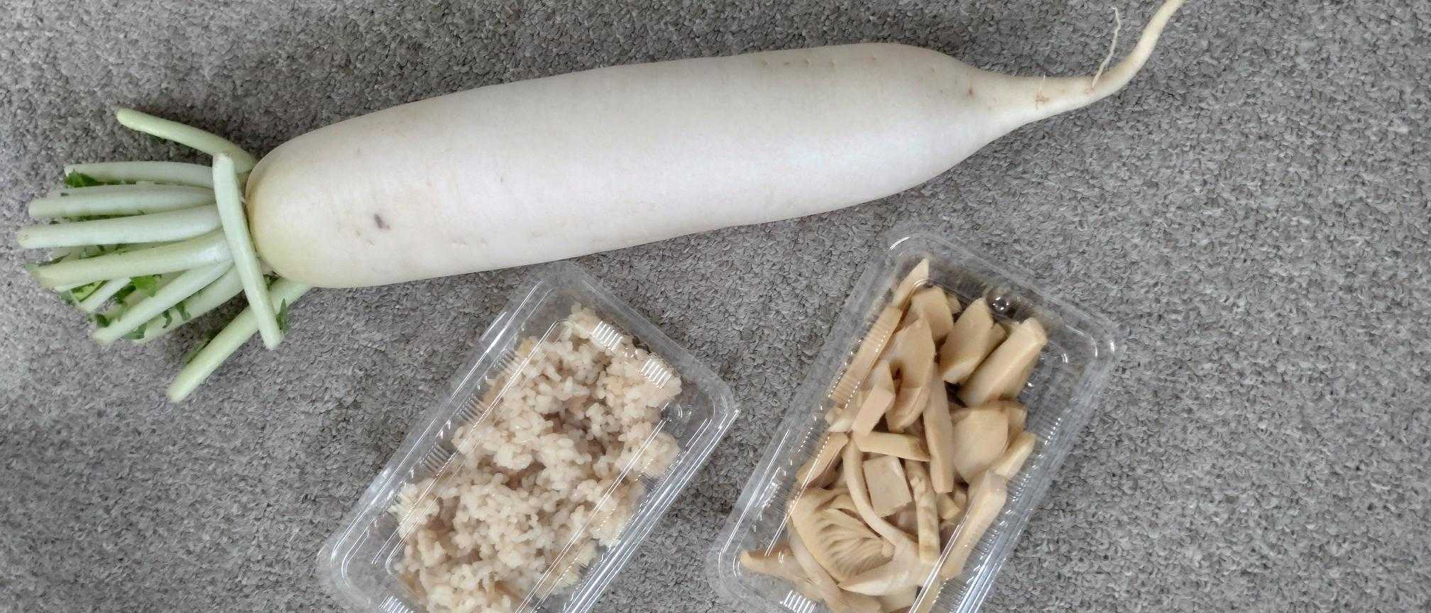 タケノコの煮物(250円)、生姜ご飯(200円)