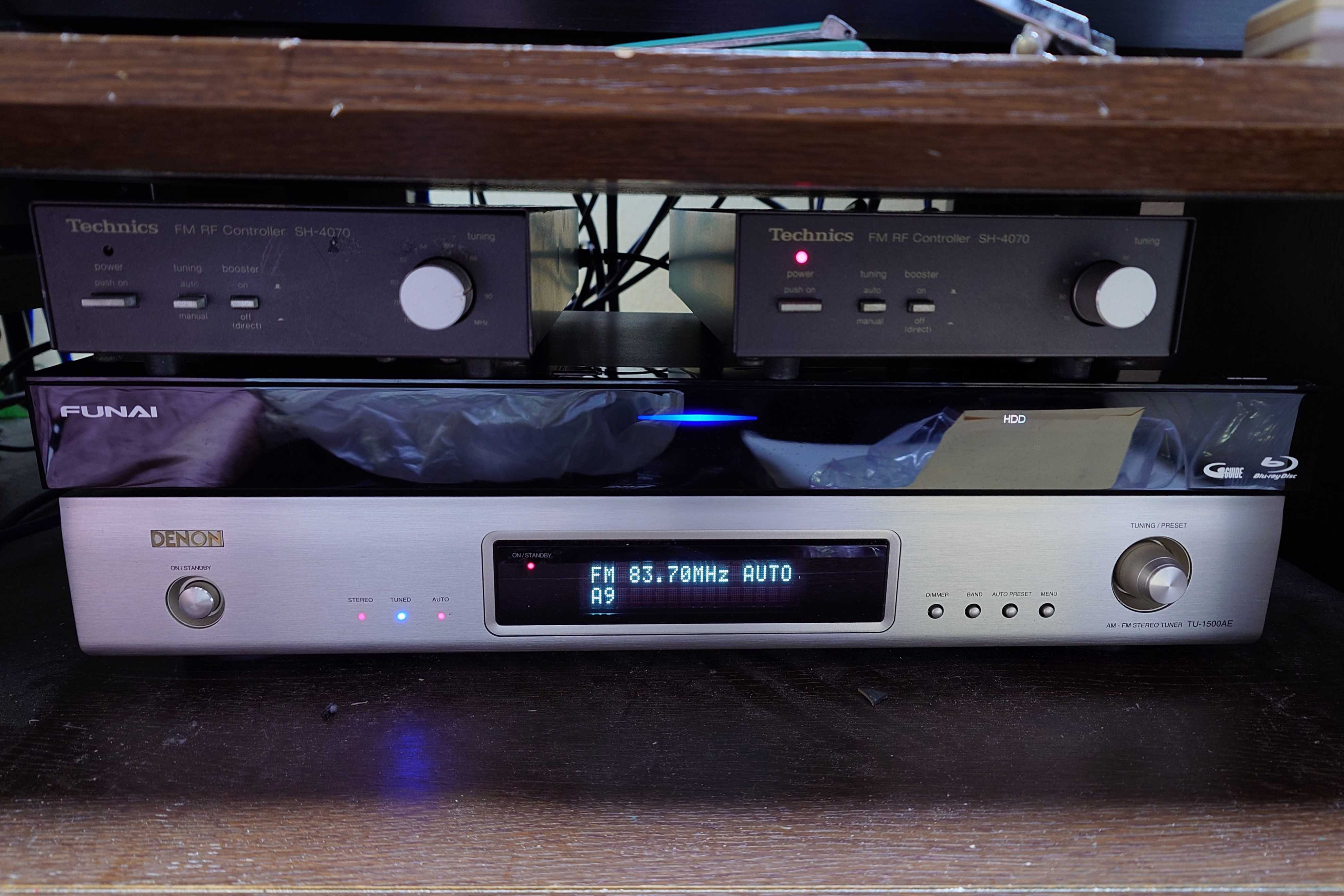 この日記で述べていたDENON TU-1500AEをシステムに組み込み、アンテナに接続致しました。やはり完動品でした。同調ズレも無く感度が高く、非常にすっきりした音をしています。ワイドFMにも対応しているし、膨大な局数のプリセットが出来、しかもリモコンが付いているので今後重宝しそうです。お安い良いお買い物でした。