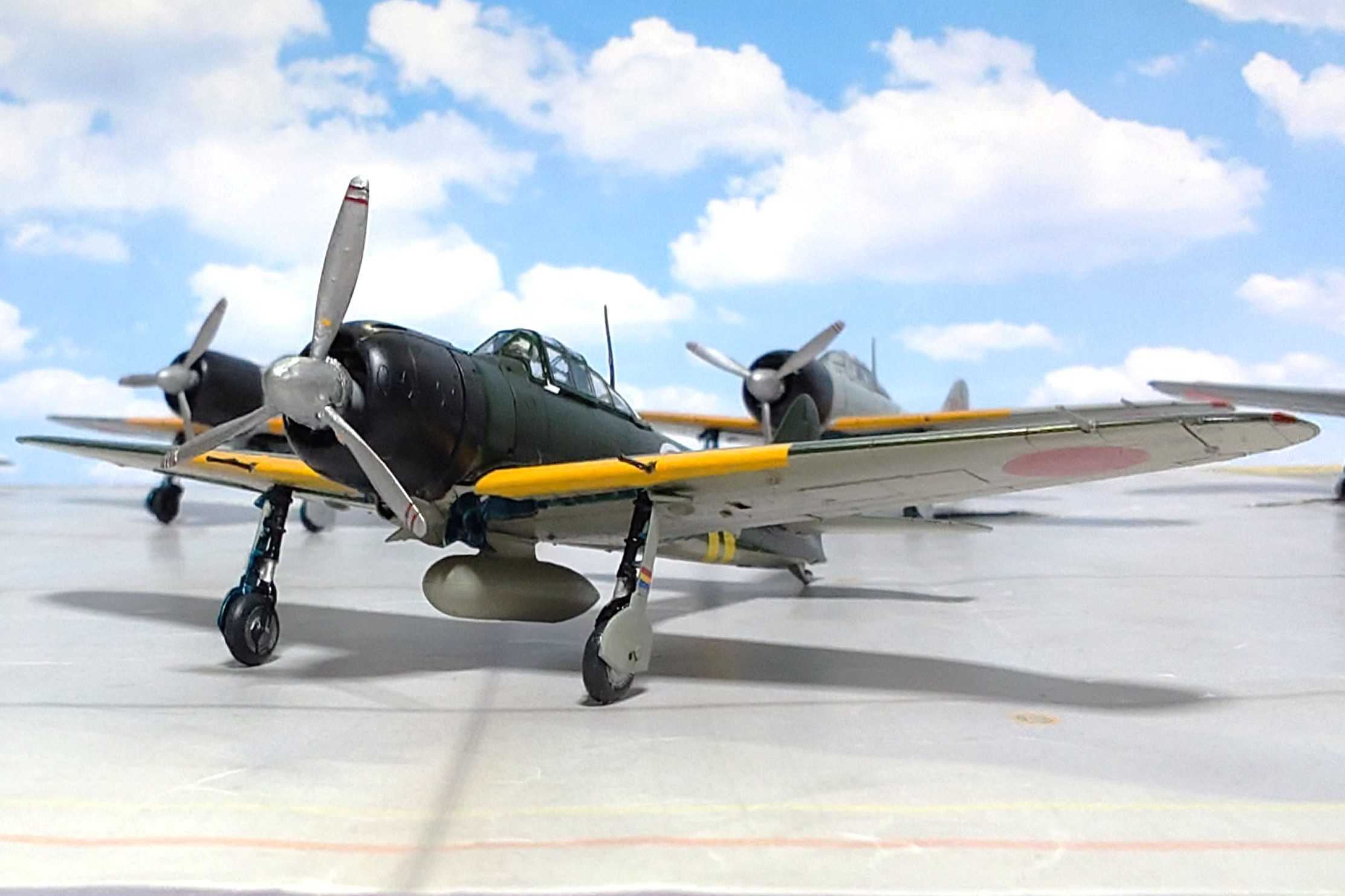 マイクロエース(LS)の1/72零戦52型を作りました。現在でも入手が容易な全可動式のいにしえのキットで、風防の形状が変なので利用したのは三分割の先頭のみで、中央と後部は余っていたタミヤのものを使いました。翼内の20㎜砲も余剰パーツを装着しました。なお全体的に1/72零戦にしては小さいですが、これはもともと1/76キットだったからです。デカールも別売りのものを使いました。1944 年 6 月サイパン島攻撃後に米海兵隊が捕獲し、その後空母CVW USS コパヒー (CV-12) でテストのために米国へ輸送された機体のうちのひとつです。