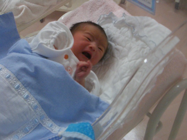 看護師さんが「この子は食いしん坊です」って、2時にお乳飲んだのに、3時ですでにギャンギャンないていました。