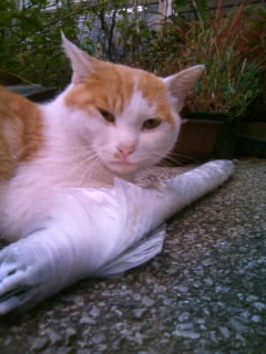 バス停からの帰り道にある小さなそば屋さんの近くによくいる猫に今日も会いました。