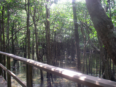 こんにちは(*^_^*)今日もとっても天気が良いです洗濯物が、すぐにカラッと乾きます~ お盆というのにお休みがない我が家は、いつものような日々です。あぁ~どこか行きたいなぁ~ 海水浴とか・・山登りとか・・あぁ~キャンプもいいなぁ~ 7月に行った西表。きれいな景色と海の中の世界を紹介しますね。まずはマングローブから。マングローブって聞いたことはあったけど、一体何のことか知らなかった私。 マングローブとは、熱帯や亜熱帯の遠浅の海岸沿いの砂泥地に海水の塩分濃度に耐えうる樹木が多数集まってつくる樹林をいい、紅樹林ともよぶ。おもにヒルギ科、シクンシ科、クマツヅラ科、センダン科などの植物からなる。らしいです。(ヤフー百科事典より)つまりはですね・・海水でも育つ木が密集してはえているところなんです。厳密には、マングローブがある場所は・・海と川の境界の両方の水が混ざったところらしいです。普通の木は塩水にさらすと、枯れますよね、、マングローブで耐えれる木は、塩分を葉からだしているそうです。でも、すべての葉から塩分をだすと、葉のすべてが枯れてしまうので・・沢山あるうちの一部だけ(数枚だけ)に集中させて塩分を排出し、他の葉で光合成や蒸散をする仕組み。うまくできていますよね~感心しました。そして、根がたえず塩水に使っていると根腐れを起こすので、根が呼吸するために(酸素を取り入れる為に)、水の表面から根の一部をだしているそうです。辛い環境でも自分で工夫しているなんて、すごいなぁ~下の写真は、その水中から若い木が育ち始めているところ。まだ小さいけど頑張っています!幻想的でしたそのマングローブ周辺を歩いて、トレッキング。景色に癒されながら・・ 歩いて歩いて・・40分くらいかな?主婦にはこたえました着いた先は、滝!!!!!!とっても大きい滝。マイナスイオンだらけ。思いっきり打たれて、修行?してきましたそのあとは・・ツアーのみんなで昼食。絶品そーきそばをいただきました。こんな景色に囲まれて、もう最高!パイナップルも店先で売られていました。150円なんです!ビックリ。お土産にしましたよ~午後からはツアーのボートにのって・・バラス島へ・・西表から15分くらいだったかな?すぐに着きます途中カモメの歓迎をうけながら・・到着!この白い砂浜のような部分。砂ではなくて、全部サンゴ礁なんです人工的に作ったわけではなく、水流によって寄せ集められたサンゴがつもったらしいそして島になったようですよ中に潜ると・・おさかなパラダイス色とりどりのサンゴ礁が広がって リトルマーメイド気分どこまでもこの景色が続くので・・言葉では言い表せないような美しさでした竜宮城はきっとこんなところにあるんだろうなぁ・・サンゴ礁、色々な形があって・・表札を作る人もいるのだとか・・お写真がこれ以上アップできないのでまた~次はもっと魚たちを・・あぁ~泳ぎたい良いお盆をお過ごしくださいませ~にほんブログ村