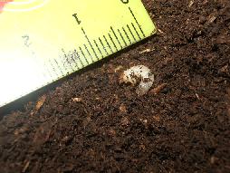 ただ今我が家で飼っているカブトムシの卵&幼虫・・・・。今年生まれたBABYちゃん。全部で15匹ほど。生まれたタイミングが多少違うので、幼虫自体の大きさはまちまちだが、二世が生きている。。。それだけでも、スゴイと感動している。これまでの道のりは・・・・夏休み中盤くらいに、親達が☆になってしまたのを見届け、しばらくして土の中を探したら、いたいた!クリーム色の小さな卵ちゃん♪私自ら、厳選に厳選を重ねてゲットした土をいれ、待つこと2週間。。。。。くらいだったかな???写真のようなイモムシくんがウニウニしていた。「ヤッホー♪」虫好きの息子よりも私のほうが、楽しんで育てている。毎日気になってしょうがないが、あまりホジクルのも良くないようで、少々大きくなるまで静かに見守っていかねばと、思っている今日この頃である
