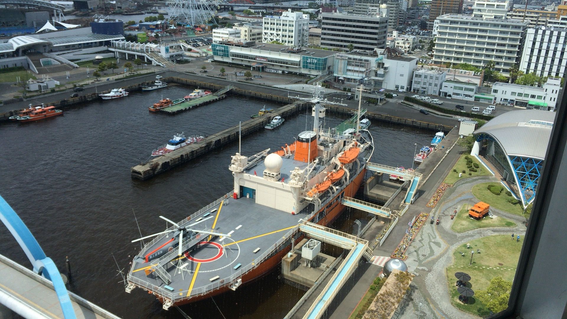 ポートビルからみた南極観測船ふじ 名古屋港水族館