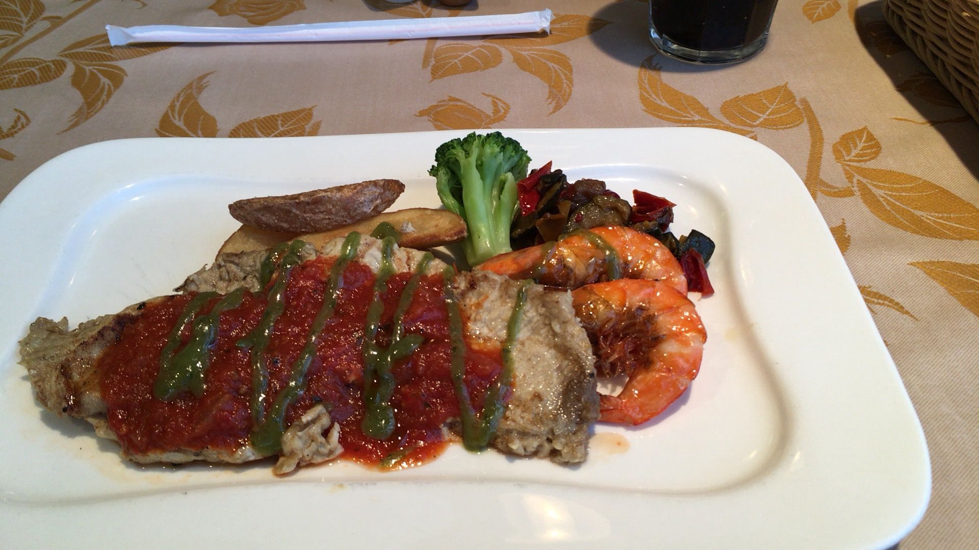 水族館内のレストラン アリバダでシャークステーキとアイスコーヒー 1660円
