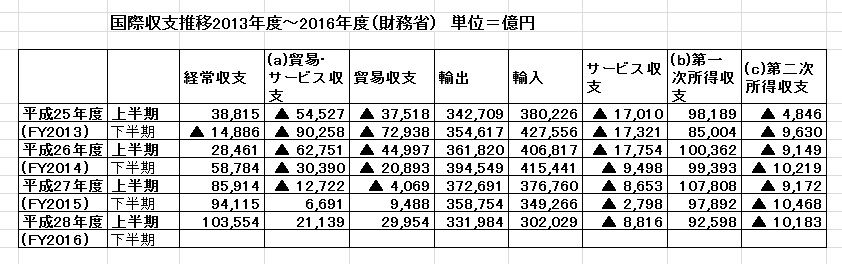 ★ 2016年9月度の本邦国際収支が公表されて、 本年度上半期4~9月の国際収支が判明した。 現在は新大統領トランプ氏のサプライズ選挙結果に沸いて、 先行きは読めない国内経済(兎に角、儲けが目当ての無節操な?株式市況) だが、呆けなりに追いかけてみたい。 2008年のリーマンショックや 2013年の東日本大震災時の福島原発の水素爆発などで、 日本の国際収支(=経常収支)の黒字幅は萎んだ。 幸い2013年度下期に赤字になっただけで 最近は原油価格がかなりの低位にあることで回復基調にあり 今上期にはリーマンショック以後の最大値10兆円余を記録した。 1.貿易収支は2015年度上半期まで赤字が続いていたが、 同下半期には貿易黒字が9,400億円、今上半期には3兆円弱と増加している。 これは、輸出も減少気味だが、輸入がそれ以上に減少している からであり、最大の理由は、原油価格の低位安定が最も寄与している。 円高で輸入が金額で少なく抑えられたのも一因である。 他方で、輸出は世界的な不況を反映し、また、中国の国内景気不振による 鉄鋼等輸出ドライブに押されて、本邦鉄鋼等の輸出は振るわなかった。 円高で、現地購買力に比較して高価となった本邦製品の輸出も不振となった。 2.貿易外収支であるサービス収支は「訪日外客数の増加」を反映して 旅行収支が6,288億円の黒字となり、全体の赤字幅を多少は縮小させた。 3.第一次所得収支は本邦企業の受け取る配当金・債券収入などであり、 9兆3千億円弱の黒字で、毎期ほぼ安定し、経常収支の大黒柱である。 ただし、円高のために多少目減りしている。 4.第二次所得収支は、約1兆円の赤字が続いている。 ・・・・・・・・・・ 今後については、 BREXITでの欧州不安材料、 中国経済の輸出ドライブ、 新興国、産油国などの景気の不振などで見通しは明るくない。 米国ではTPP反対、保護貿易丸出しの新大統領が来春誕生する不安もある。 しかし、新米大統領は、国内に蔓延するRust-Belt感覚を打破すべく ニューディール政策模様のバラマキ公共投資を断行し、 米国経済を立て直そうとするであろう。 米国経済が立ち直るのは日本経済にもプラスに見える。 しかし、保護関税で日本の自動車を閉め出したり、 メキシコに進出している米国向け本邦間接輸出産業などの存立基盤を 崩壊させる政策を立案するなども懸念材料である。 この場合は、米国を重要な輸出市場としている日本には大打撃であろう。 また、昔のメキシコのように、 「輸出する分を輸入させる方式」が要求されると 対米輸入が増える可能性も予想される。 幸いにして、日本は原油を輸入せざるを得ないから、 「原油輸入先」を中東地区から北米のシェ-ルオイルに代替させるなどの 抜本的な貿易構造変更が必要かも知れない。 兎に角、今の中国のような独りよがりの「核心的利益の追求」ではなく、 「グローバルな互恵の精神」の普及が再び重要となる時代が 直ぐ迫っていることを理解し、アベノミクスは「変身!」すべきであろう。 よく判らないが、現代の「自由貿易主義」から逆行した、 「重商主義(重金主義→貿易差額主義→産業保護主義)」 という言葉を調べ直す必要がありそうである。 日本にも、平成の太平の世に、ペリー来航の黒船が現れそうである。★ 呆けが危険を感じても仕方がないが・・・★