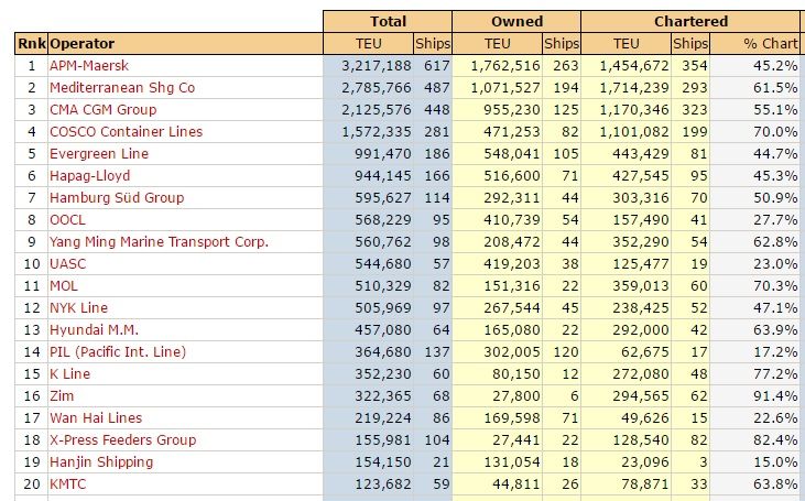 「海運不況の分析と本邦コンテナ船事業の合従連衡」の後編★ コンテナ船の運航業者の世界のランキングである。 Alphalinerによる2016.11.4の公表100社のうちTOP 20社を抜き出したもの。 海運王国の日本では、来年7月に日本郵船、商船三井、川崎汽船の3社が 経営悪化が著しいコンテナ船部門を持ち寄り、 合計3,000億円を出資して共同会社として発足させる予定だ。 /// 有価証券報告書で3社の業績を見てみる。 3社の売上高合計をみると、2015年度に対前年同期比で▲6.2%減少し、 更に、この上半期には▲23%の減少となっている。 3社の営業利益合計は、2015年度には607億円と、対前年同期比▲53.8%と半減し、 更に、この上半期には大幅な赤字▲509億円の赤字(前年同期は656億円) と様変わりしている。 3社の経常利益合計は2015年度には996億円であったが、 今上半期には ▲543億円の赤字(前年同期は864億円の黒字)となっている。 /// 「経常利益」=「営業利益」+「受取利息・配当金」+「持分法による投資利益」 +「為替差益」+「その他営業外収益」ー「支払利息」ー「その他営業外費用」 ///★ 各社のセグメント別(部門別)業績を、コンテナ部門(=日本郵船は定期船部門) と「その他部門」で見てみる。 ・・・・・・・・・・・・ 一般管理費などのうち部門(=セグメント)に分けられないものを「調整金」で 分類している(各社同じ扱い)。 ・・・・・・・・・・・・ コンテナ船部門は3社とも、大幅な赤字部門となっているが、 その他部門でも商船三井を除いて赤字化している。 ★ 1. コンテナ船部門だけを3社集めてみる。 2015年度では売上高は2兆404億円、経常利益は▲401億円の赤字であった。 半期別の売上高の推移を見ると; 2015年上半期 1兆1,094億円→同下期 9,310億円→2016年度上半期 8,216億円 と減少を辿っている。 経常利益は、同様に 150億円→▲551億円→▲472億円と赤字化している。 2. その他セグメント部門は3社については、 2015年度には売上高は3兆1,880億円、経常利益は1,561億円であった。 半期別の売上高の推移を見ると; 2015年上半期 1兆6,618億円→同下期 1兆5,262億円→2016年度上半期1兆3,117億円 と減少している。 経常利益は、同様に862億円→699億円→69億円と黒字幅は縮小している。 3.しかし、調整金が今上期に▲81億円あるから、これを部門別売上高比で 配分すると、「コンテナ船部門」は今上期が売り上げシェア38.5%で▲31億円 を負担し、「その他部門」は▲50億円を負担すべきであろう。 調整金を勘案すると「コンテナ船部門」は、 今上半期の修正後の経常赤字は▲503億円(対売上高比▲6.1%) 「その他部門」は19億円(対売上高比)ではないだろうか。 4.修正後の経常損益を売上高と対比させると「コンテナ船部門」は▲6.1%となり、 コンテナ船部門が合同するとして、赤字解消には「6%以上の努力」が必要となる。 5. 海運会社は、セグメント別経常利益について、調整金を部門別に配分しておらず、 「調整金を配分できる営業利益などの段階」で部門別収益力を分析できたらと 思う次第である。 ちなみに、「調整金」を売上高比で分割してみる。 <調整後経常利益> 2015年度上半期→同下期→2016年度上半期 「コンテナ船部門」 130億円→ ▲594億円→ ▲503億円 「その他部門」 832億円→ 628億円→ 19億円 ★ 呆け頭には、この程度しか解らない。 元・日本郵船などの友人に笑われそうである。★