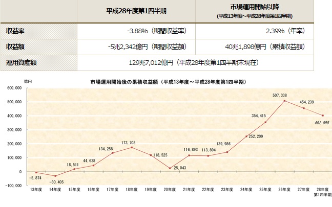 GPIFの期間損益は ▲5.2兆円 (=▲3.88%)の 赤字 となった