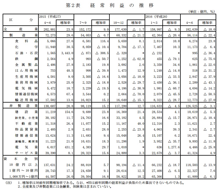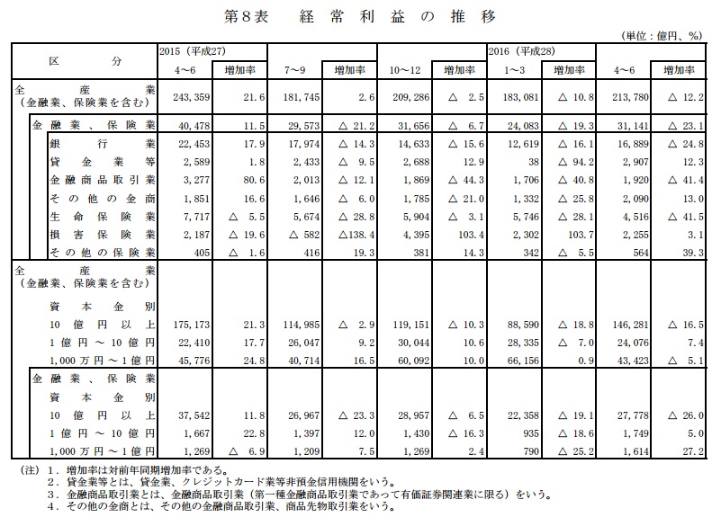 ここでも、資本金規模別には10億円超は▲13.9%の悪化、1千万円~1億円▲6.1%で、