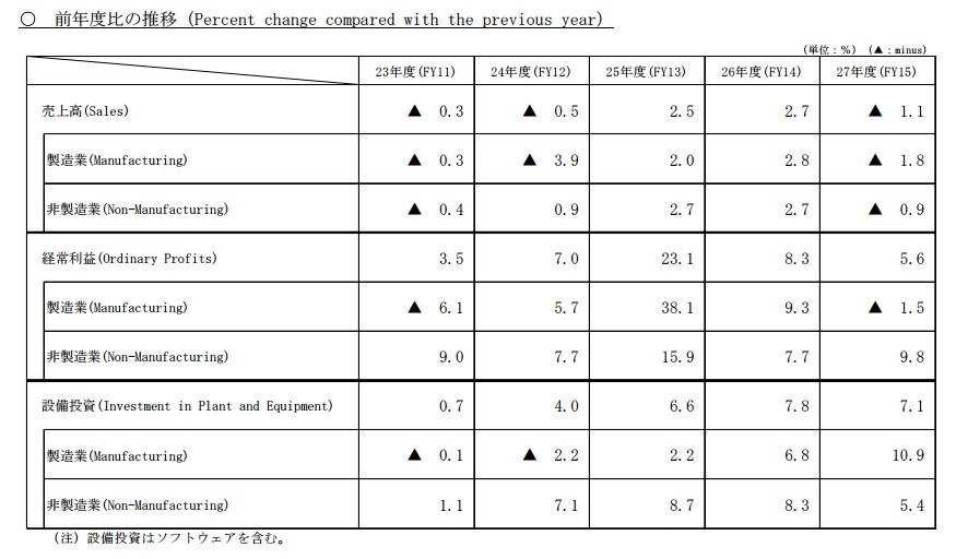 年度ベース」の報告書(全規模、ただし金融・保険業を除く)を見てみよう。