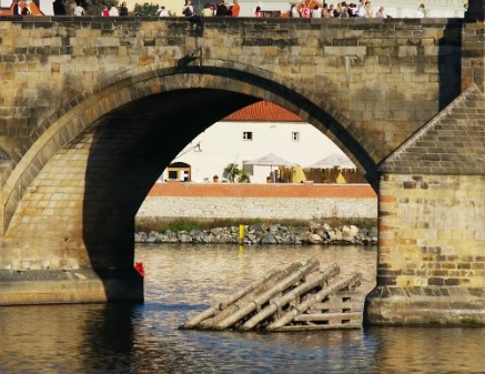 流氷や流木の危険から「アーチ石橋」カレル橋を護る工夫をしている。