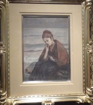 <黒田清輝「不如帰」挿絵原画:逗子海岸に佇む浪子>
